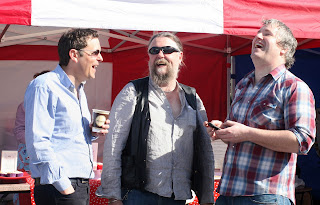 Bad move. We sold out of our cherry cola before we'd properly unloaded them. Then the lemon. Then the pink vanilla. We basically sold out of everything by 12. Noon!! We were to be there until 3pm. We weren't the only ones who sold out. Nathallie, Rebecca and Paul the fish man were also done and dusted by 12 or thereabouts. Spent ages then just sittin' and chillin' and telling people that he market launched with a bang and that we'd be back next with even more. Be back with a new table too.